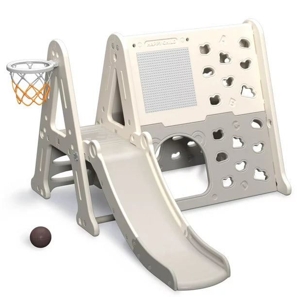 Triangle Climber with Slide, 7-in-1 A-Frame Climber Toddler Slide with Art Easel and Basketball Hoop, Indoor Climbing Toys for Toddlers 1+