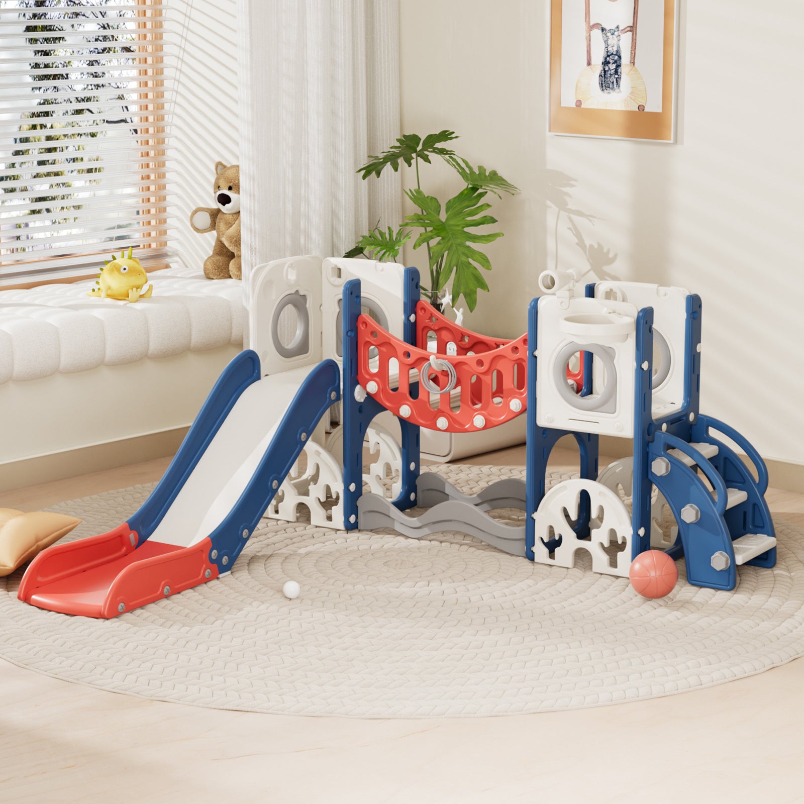 XJD 10 in 1 Toddler Slide Set, Kids Slide for Toddlers, Outdoor Indoor Playground for Toddlers 1-3, Toddler PlaySet with Basketball Hoop, Golf Set, Climbing Arch(Blue Red)