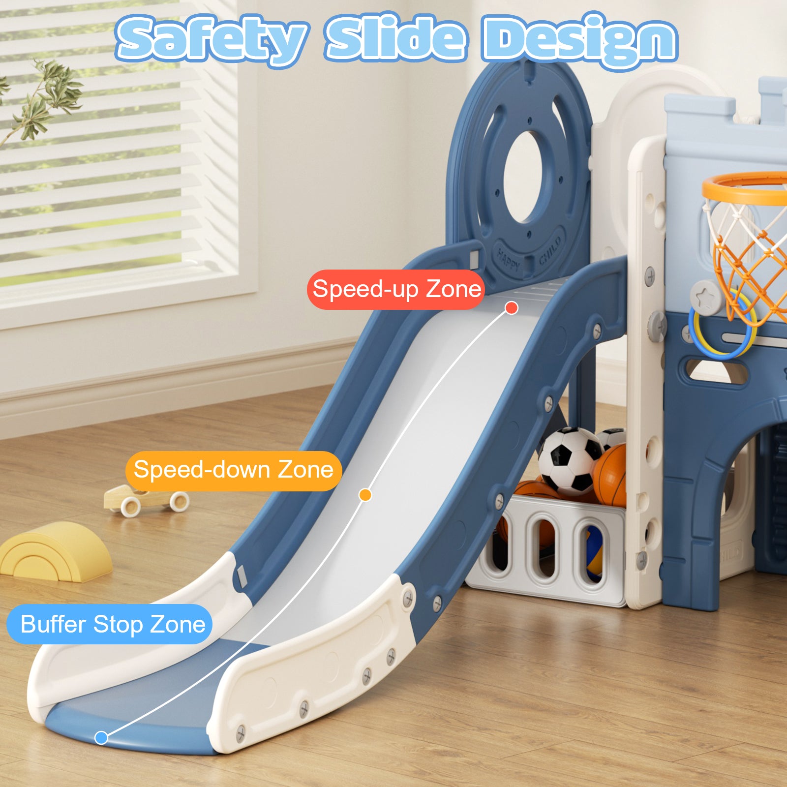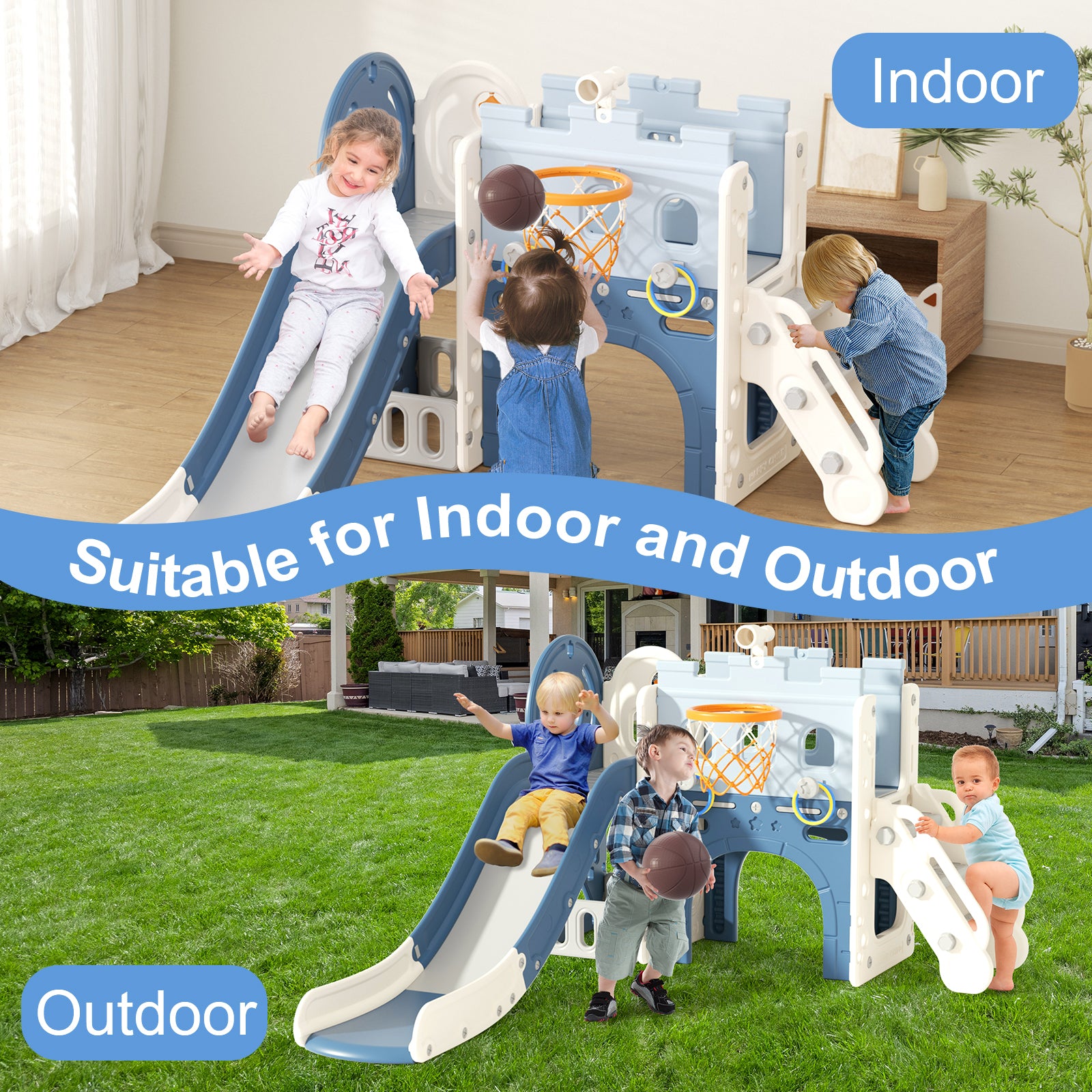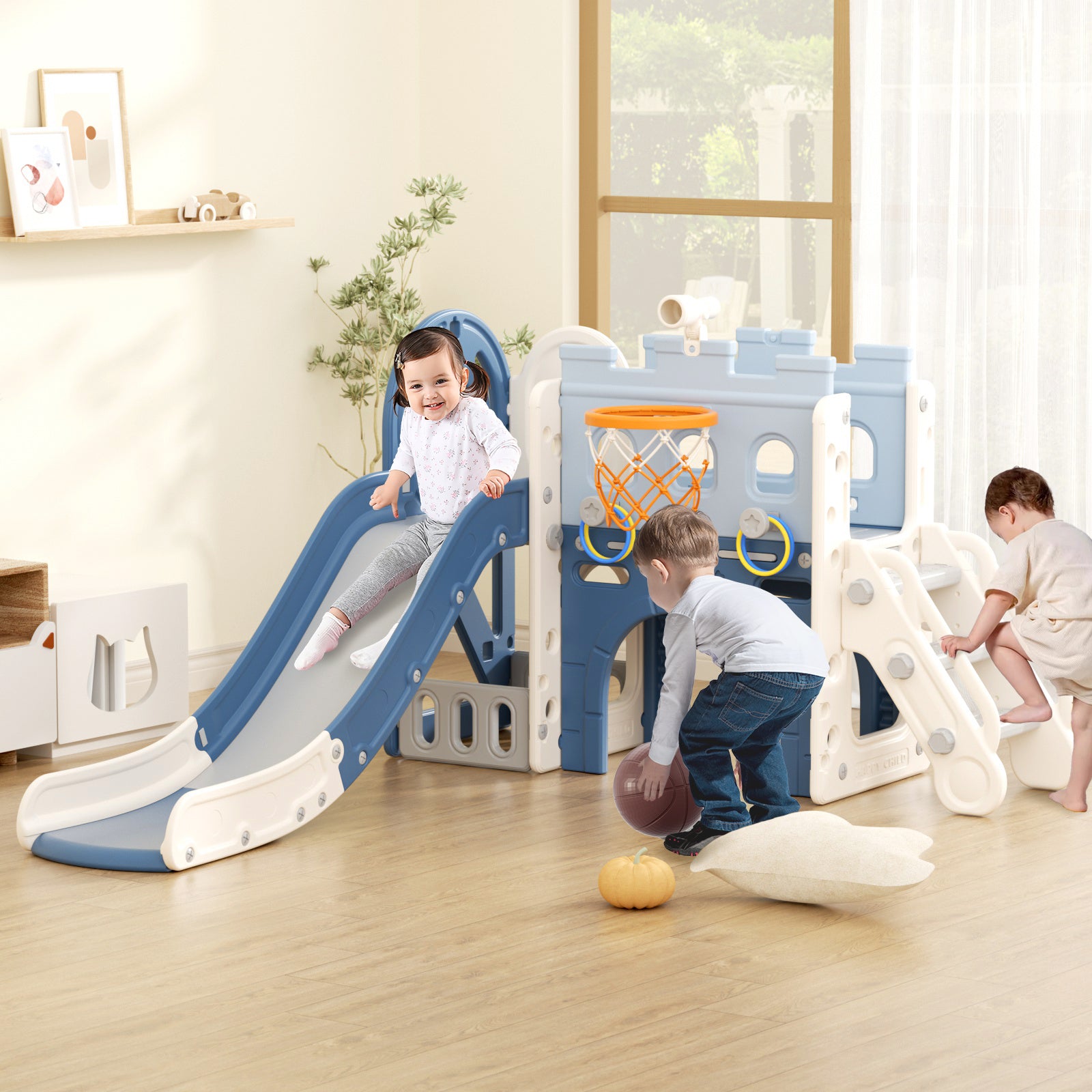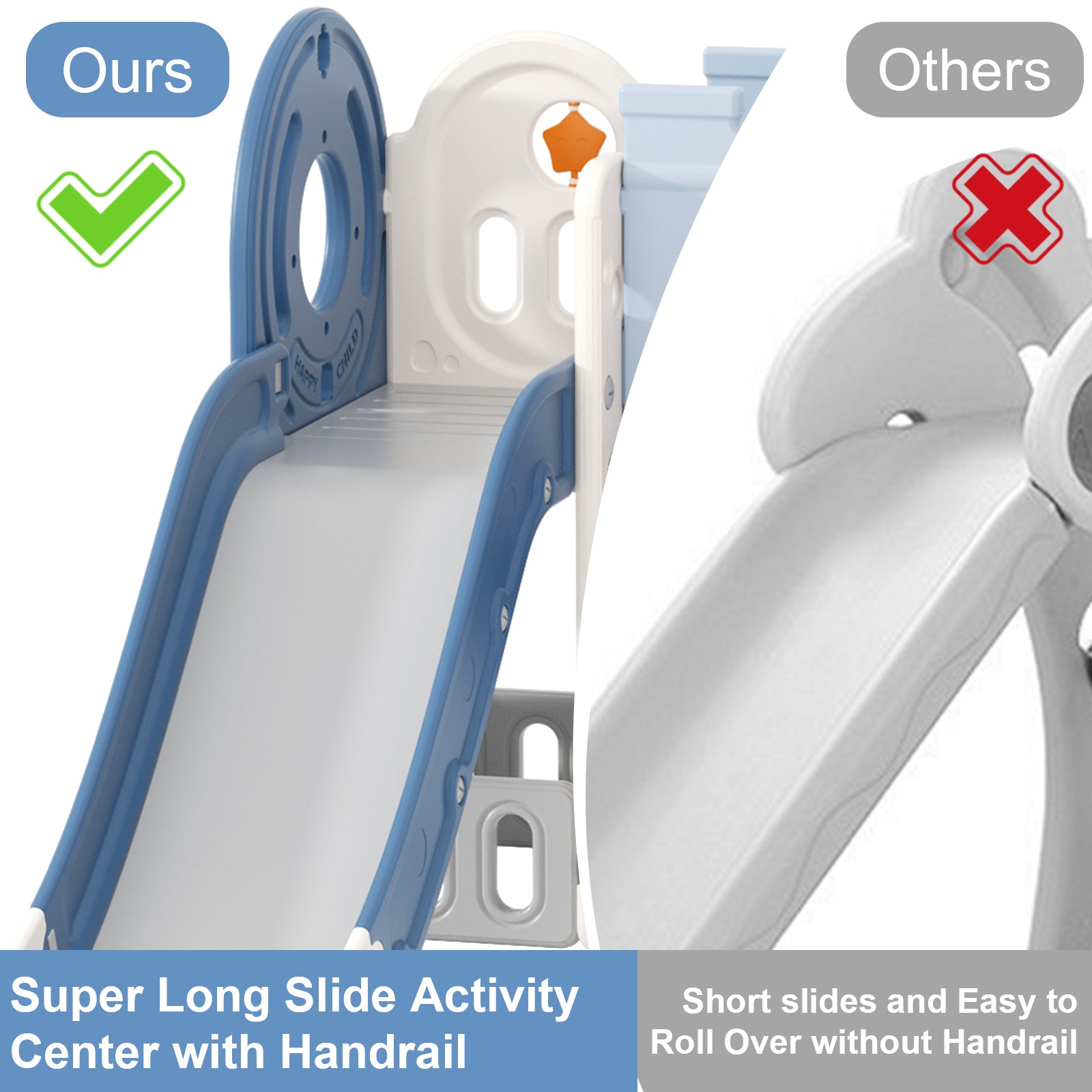 XJD 8-in-1 Toddler Slide, Kids Slide Playset with Basketball Hoop, Telescopes, Indoor Outdoor Kids Play Equipment Backyard Playground for Toddlers Age 1-3, Blue