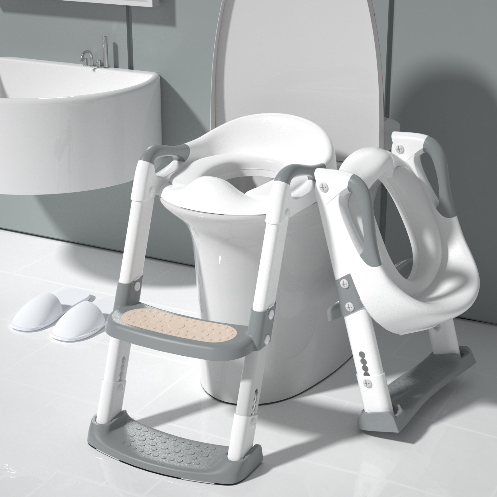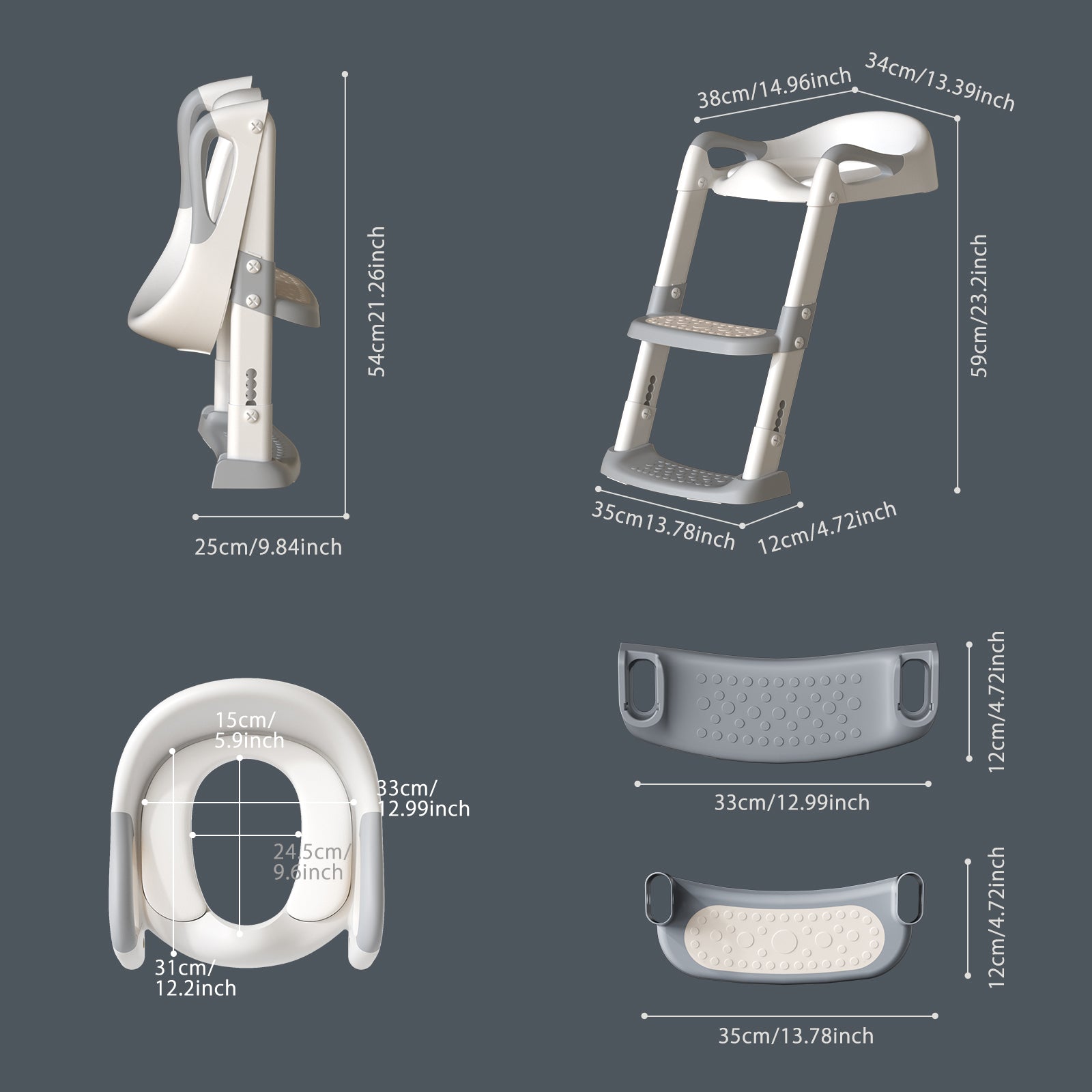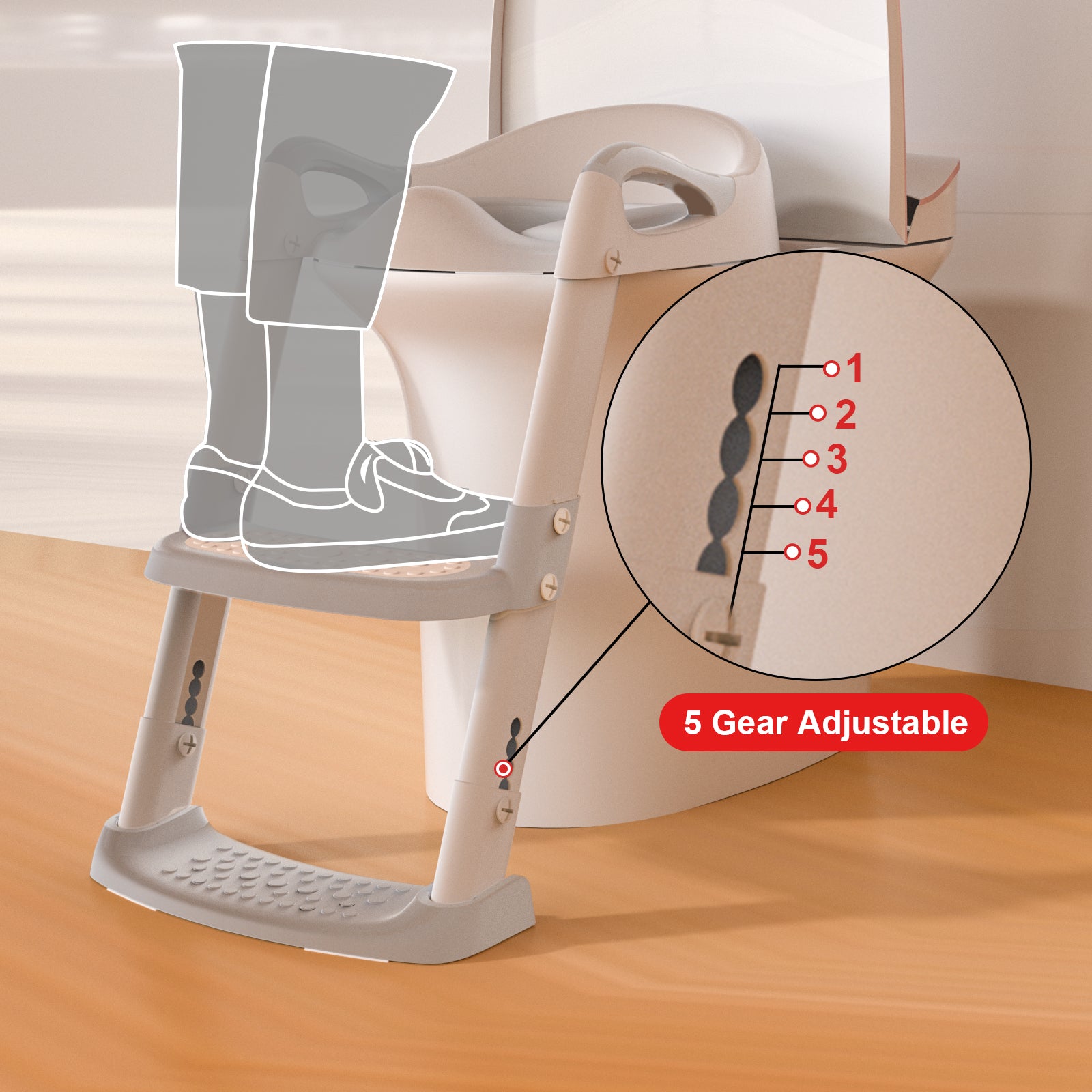 - Adjustable Step Height: With five adjustable hole positions, 2-in-1 toilet seat can be customized to fit your child's comfort and needs. It can be used as a potty training seat or as a step stool for reaching the sink or toilet.