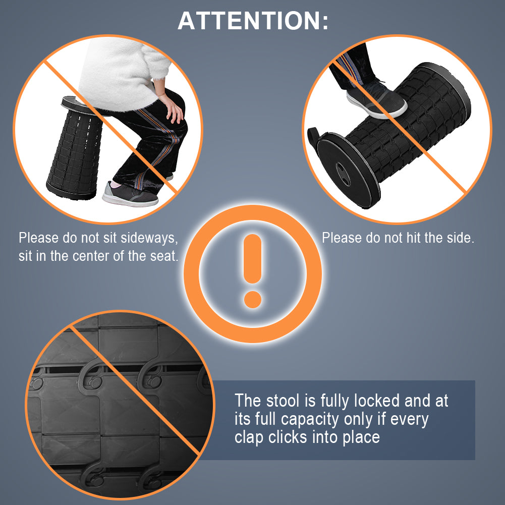 Please sit in the center of the seat.DO NOT sit on the edge of the seat and DO NOT tilt the stool.The side of the stool cannot be squeezed.