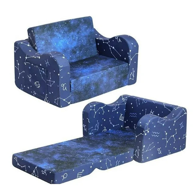 XJD Kids Couch 2-Seater Toddler Chair Kids Sofa Extra Wide Glow in The Dark Baby Convertible Sofa ,Foldable Toddler Bed for Kids Girls Boys, Blue
