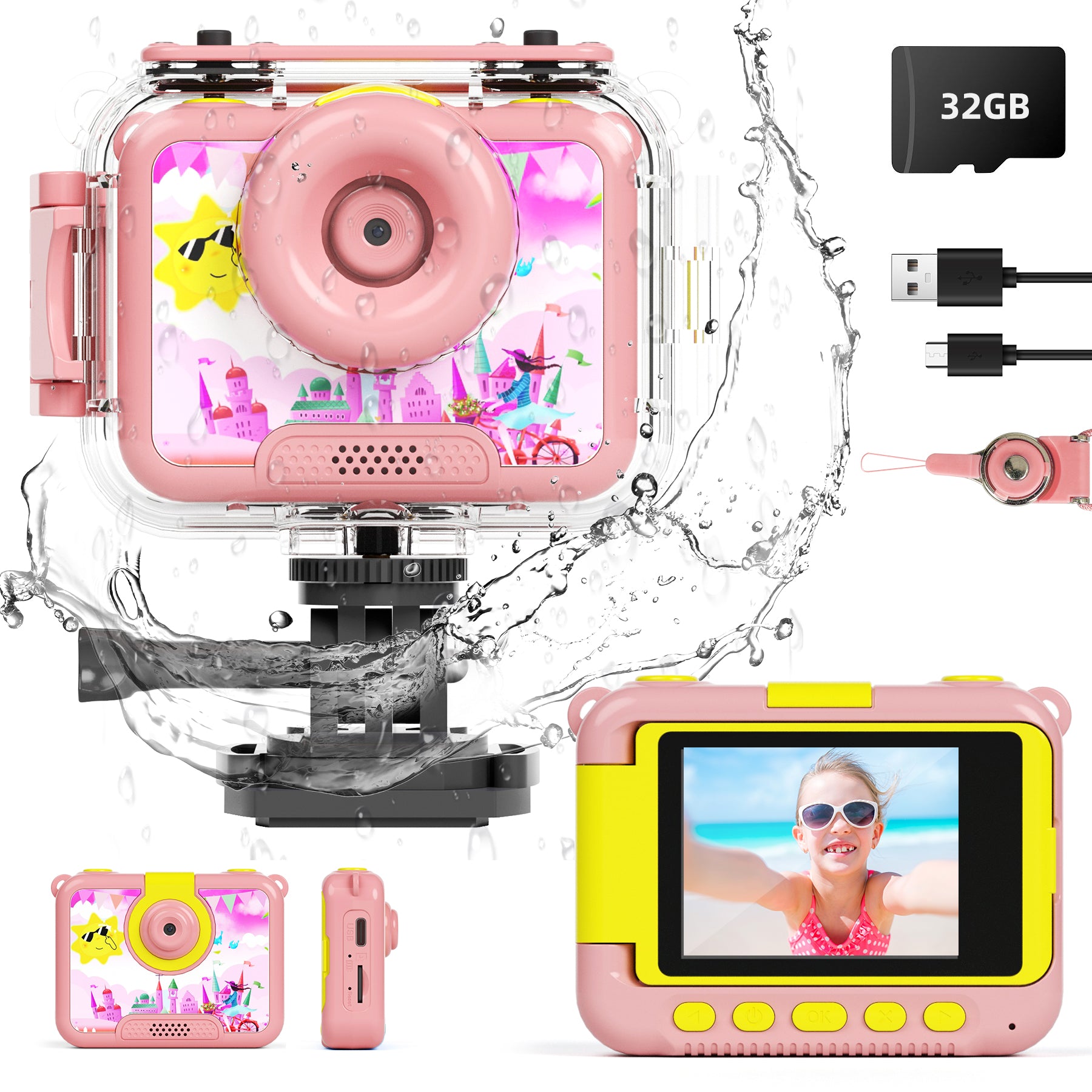 XJD Kids Digital Camera Waterproof, Birthday Gifts for Girls Age 3-9, 180 Rotatable 1080P HD Digital Action Cameras , Girl Gift Camera with 32GB SD Card - Pink