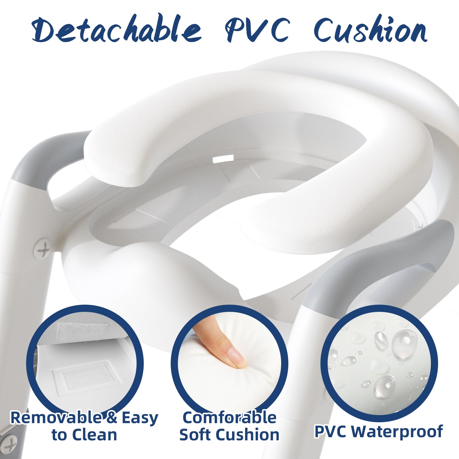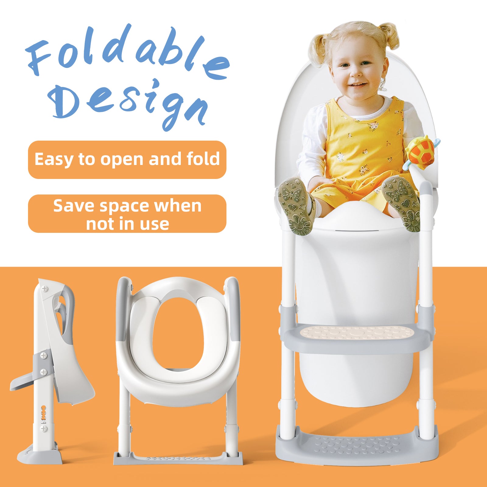 XJD Toddler Potty Training Seat for Toilet with Ladder Toddler Potty Seat for Kids Foldable 2 in 1 Adjustable Toilet Training Seat with Comfortable Cushion Anti-Slip Pads for Boys Girls