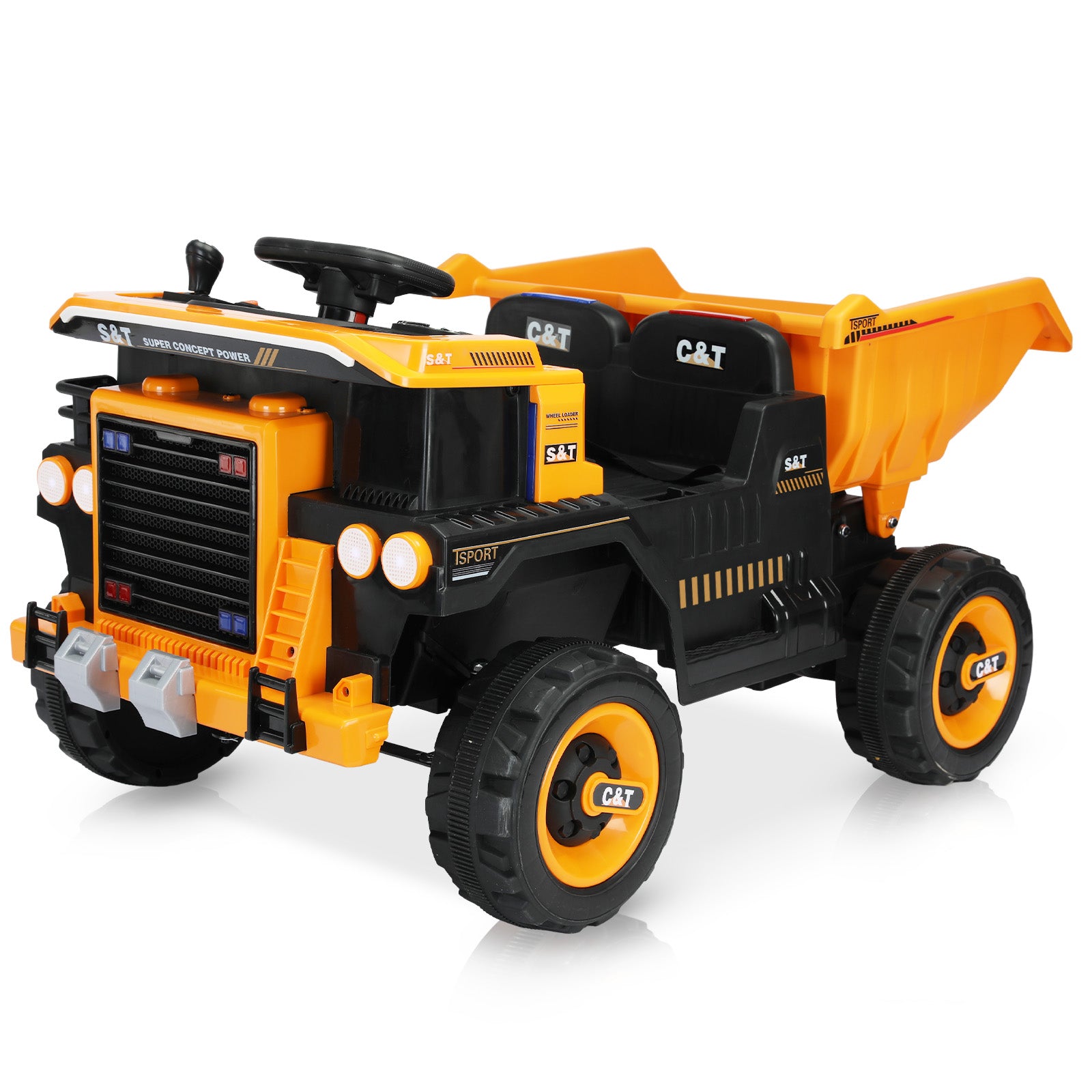 YUFU 12V Battery Kids Ride On Dump Truck RC Construction Tractor w/ Electric Bucket,Yellow