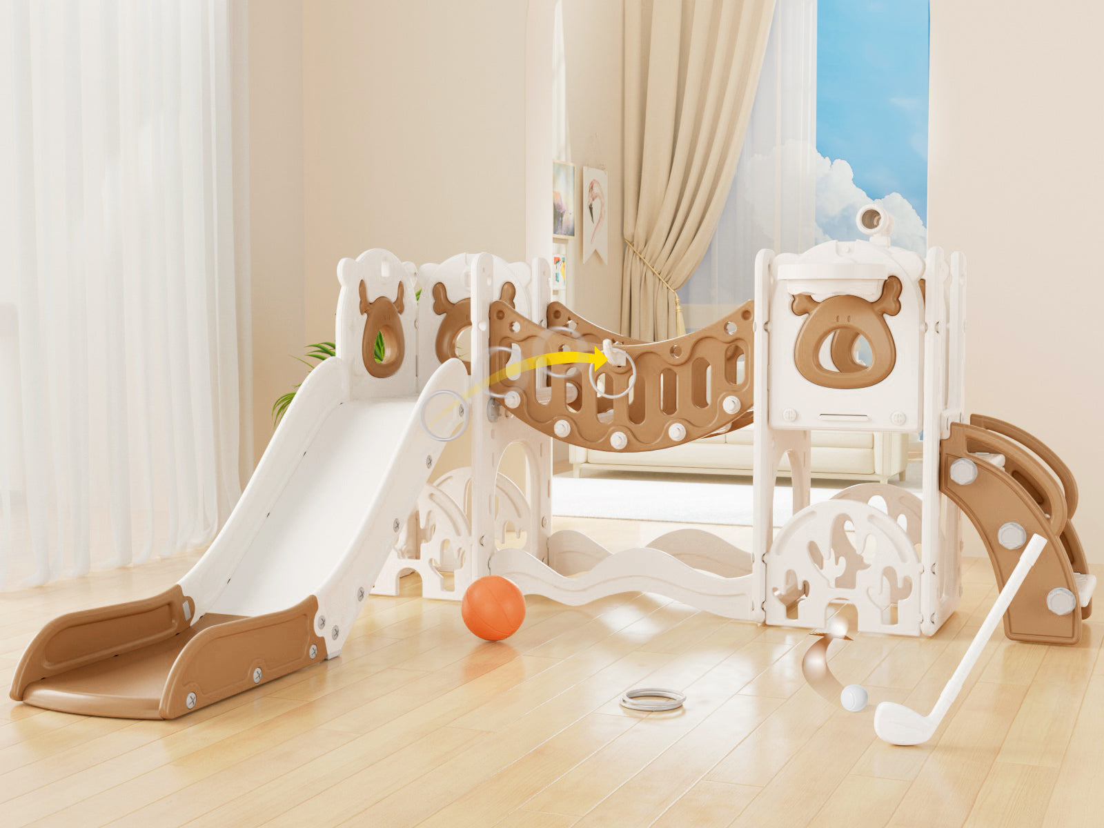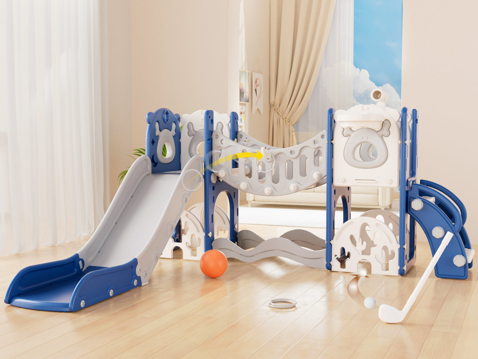 Toddler Slide and Swing Set, Kid Slide for Toddlers Age 1-3, Baby Slide with Basketball Hoop, Indoor Outdoor Slide Toddler Playset Toddler Playground