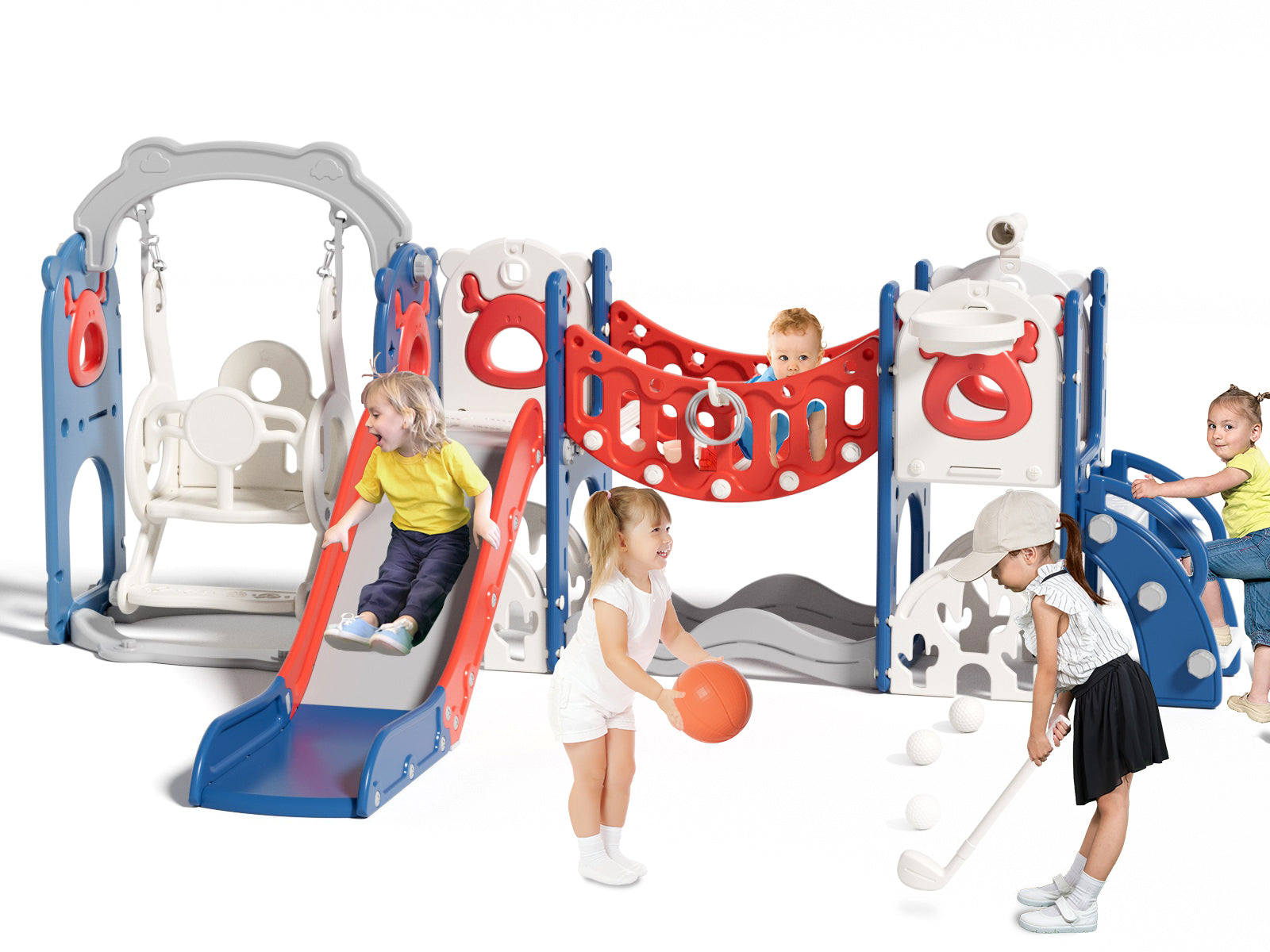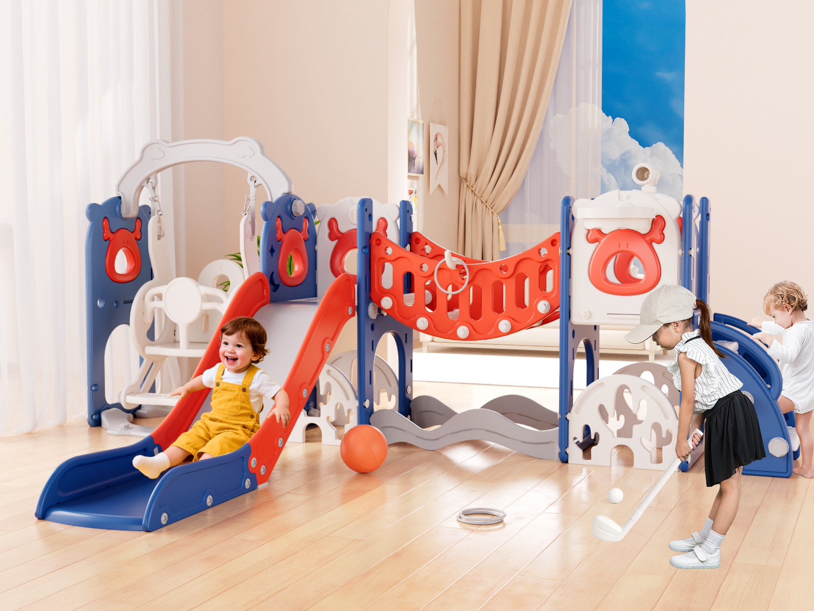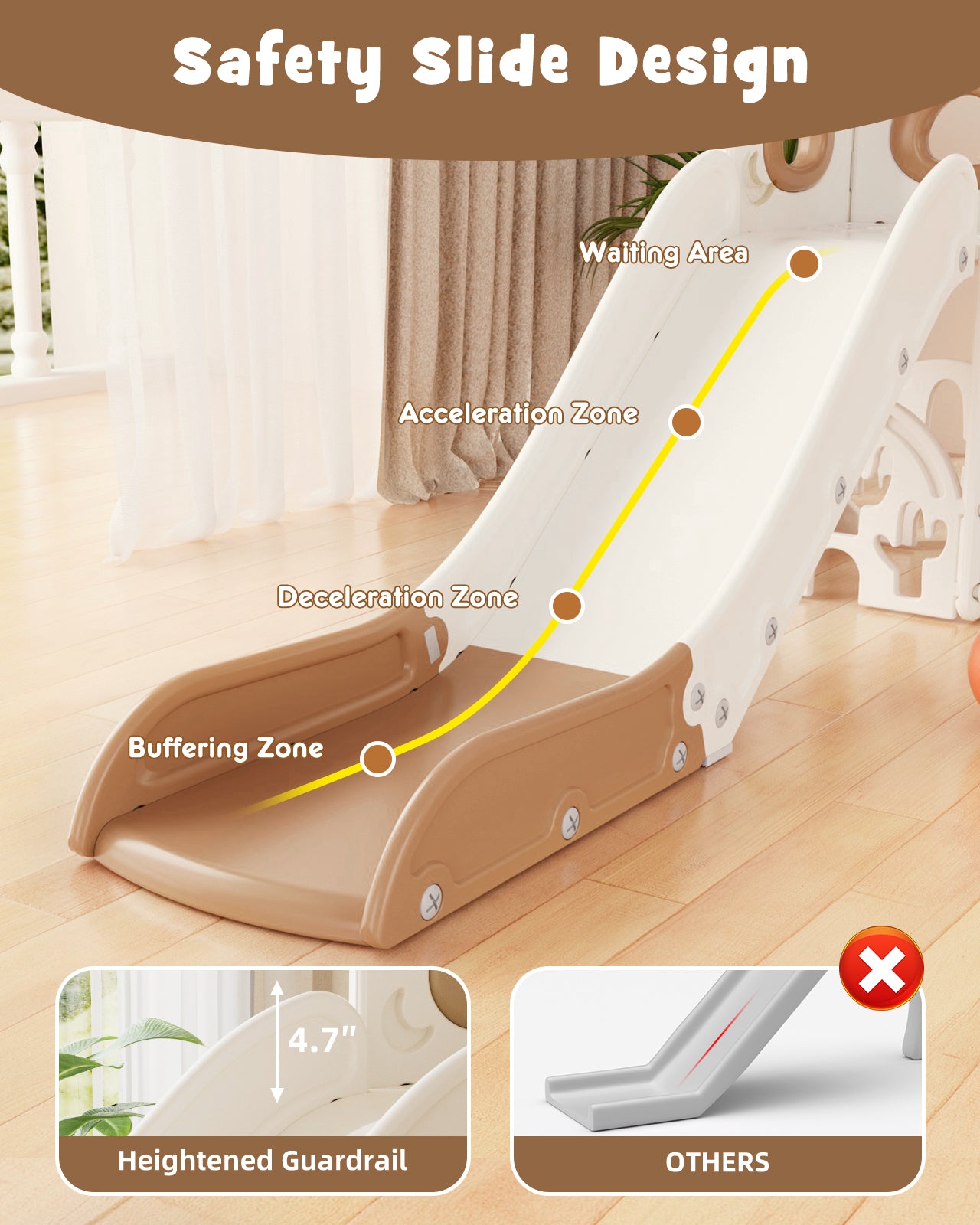 Kids Slide Set with Climber, Toddler Climber Slide Play Set with Basketball Hoop, Tunnel, Bus Playhouse Outdoor Indoor Slide Playset Age 1-6