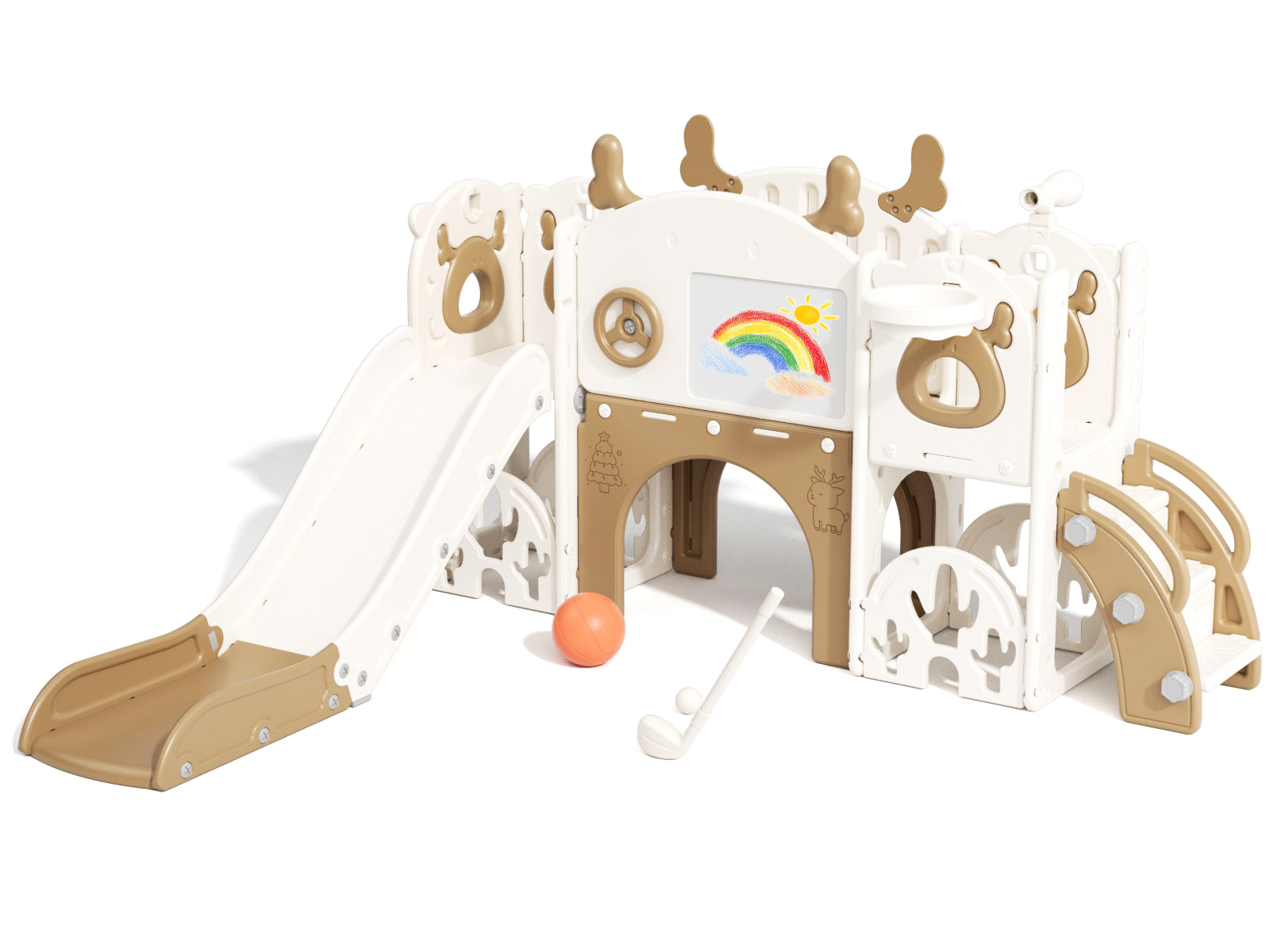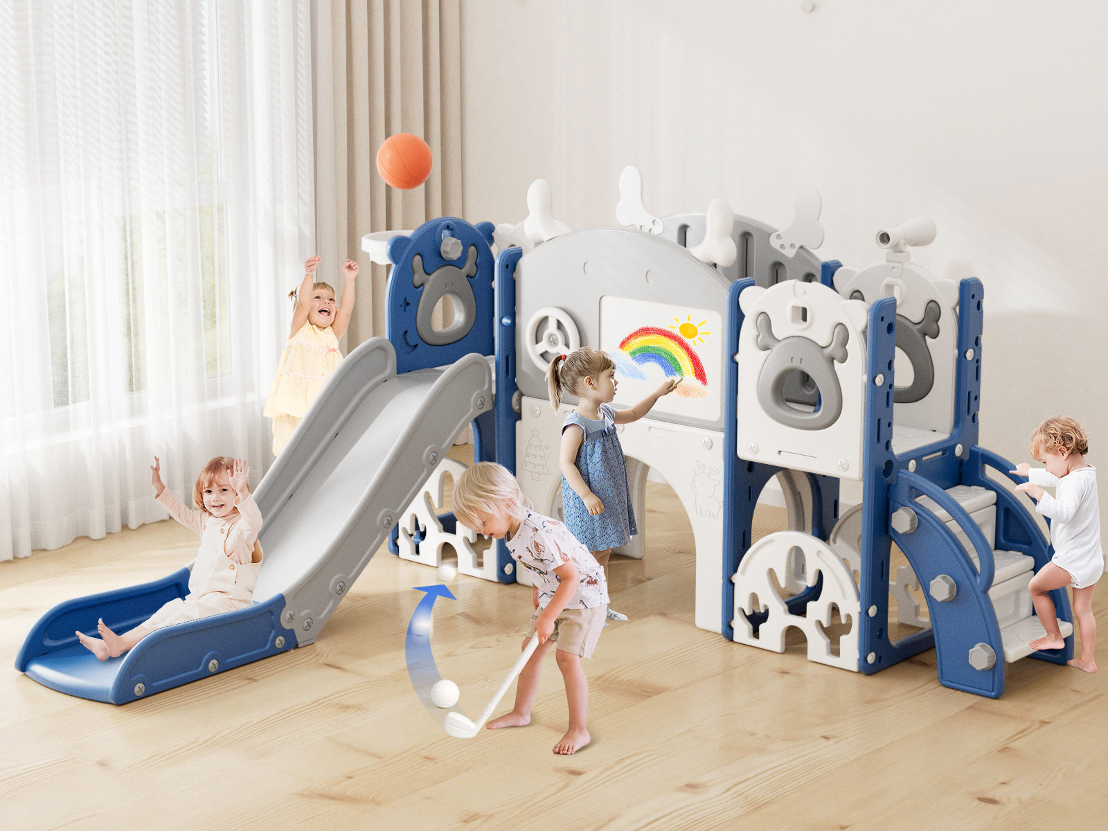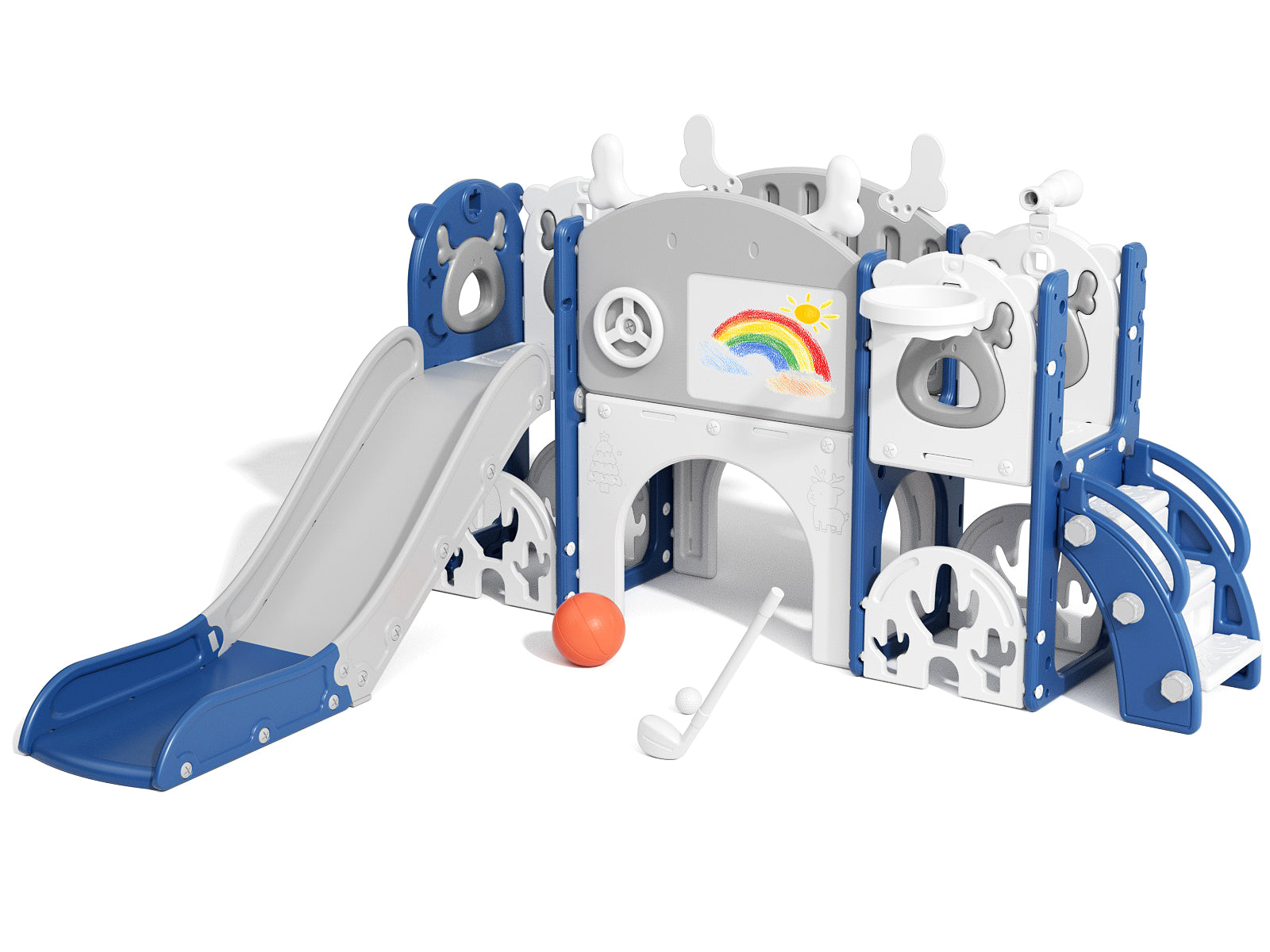 KORIMEFA 13-in-1 Toddler Slide Set, Kids Slide for Toddlers Age 1-4, New Upgrade with Golf Set, Basketball Hoop, Drawing Board for Indoor Outdoor Playset,Toddler Playground, Blue Red