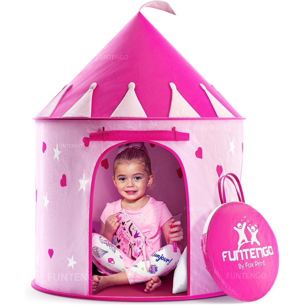 Princess Castle Play Tent with Glow In The Dark Stars,Your Kids Will Enjoy This Foldable Pop Up Pink Play Tent/House Toy for Indoor & Outdoor Use